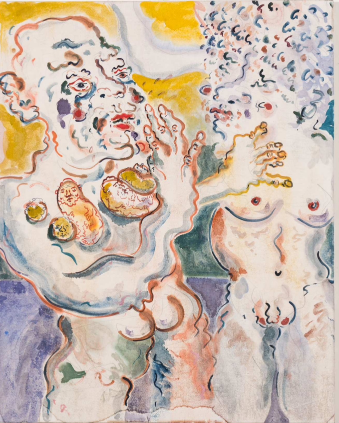 Aquarelle, oil paint and rice paper, mounted on stained wood